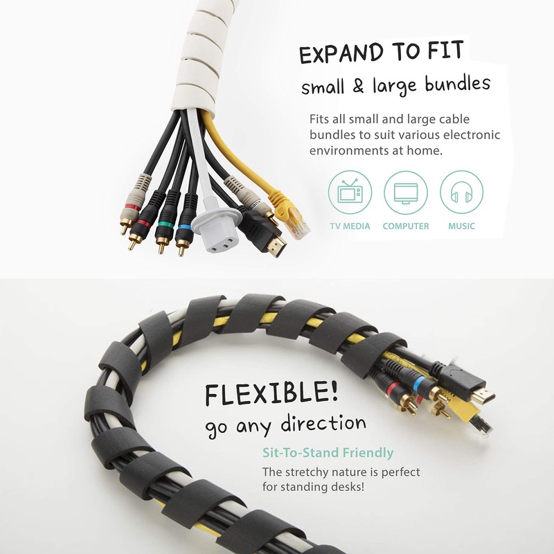 • Sit-to-stand friendly - the stretchy nature is perfect for standing desks This cable wrap is easy to move around while you adjust your desk top up and down