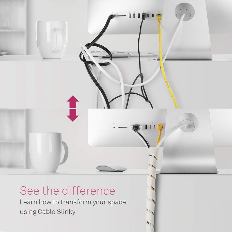 The Cable Slinky is a flexible cable wrap for grouping together many cables into one management bundle great for desktop computers and TV entertainment systems. This is the newest version of our flexible cable wrap more soft flexible and stretchable. It is sit-to-stand friendly for adjustable standing desks. The material is a lightweight flex foam material that is fire retardant. Each package comes in 5 strips of 2-ft cable slinkly for a total of 10-ft. If you love wire flexible cable wrap you should give this product a try!