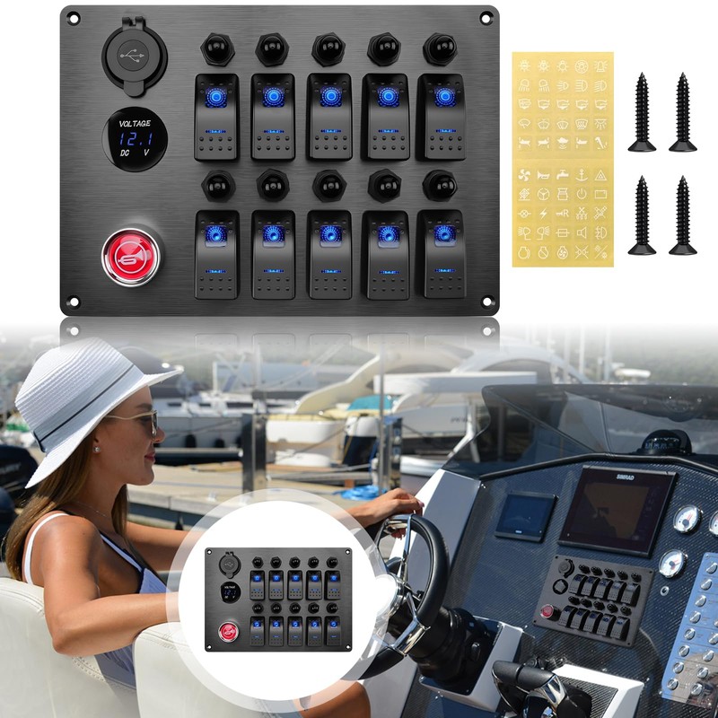 - MULTI-FUNCTIONAL 10 GANG SWITCH PANEL: The perfect centralized command center for your boat, RV, or yacht! Easily control air conditioners, lighting, bilge pumps, washdown systems, fans, appliances, and more with 10 dedicated switches