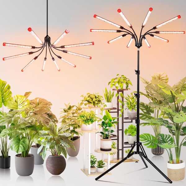 10-Head Stand & Hanging Grow Lights for Indoor Plants, FECiDA 2025 90W LED Plant Grow Light for Houseplants, Bonsai Plant, Full Spectrum Growing Lamp with 4,8,12 Hr Timer and 360° Gooseneck