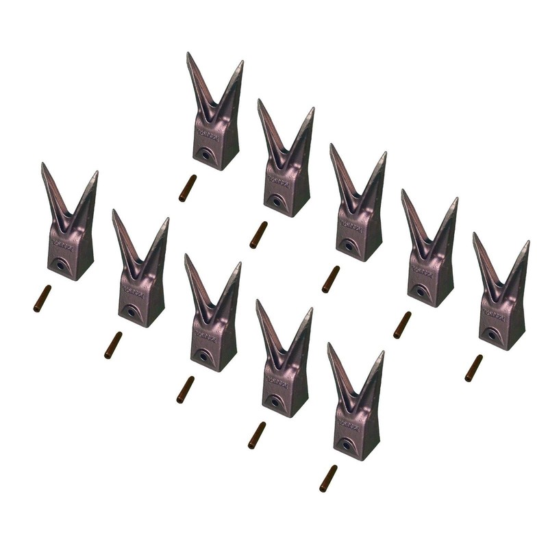 10 - Hensley Style Twin Tiger Rock Bucket Teeth w Roll Pins - X156WTL, P156
