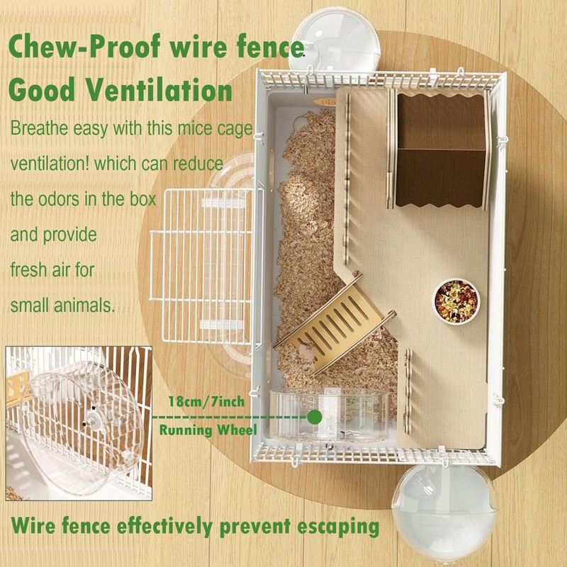 - Chew-Proof wire fence & Good Ventilation -- Breathe easy with this mice cage ventilation! which can reduce the odors in the box and provide fresh air for small animals.