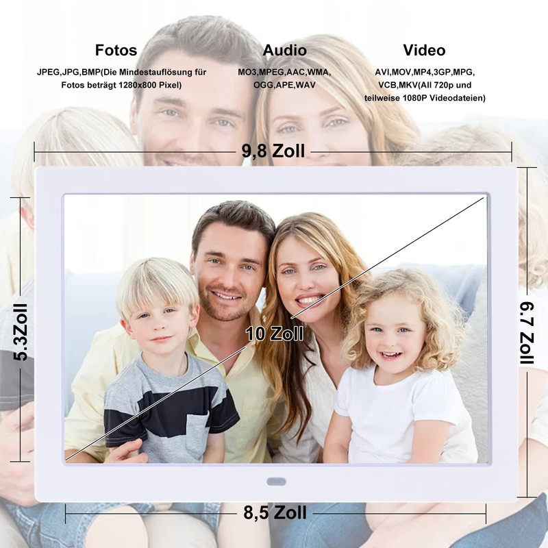 10 Inch Digital Photo Frame, 1280 x 800 IPS Display, Digital Picture Frame Supports Photo/Music/Video Player/Calendar/Alarm, with Remote Control, USB or SD Card, Wall Mountable