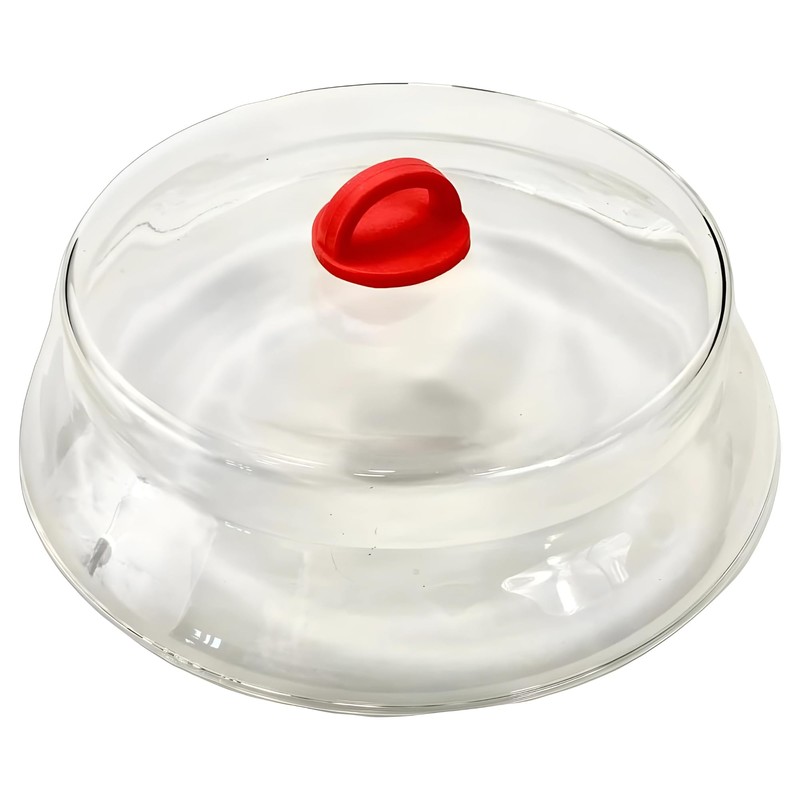 10 Inch Microwave Tempered Borosilicate Glass Plate Cover with Red Easy-Grip Silicone Handle - Unvented to Steam Food -Microwaveable/Oven/Stove Safe - Red Silicone Handle for Safe Easy Grip