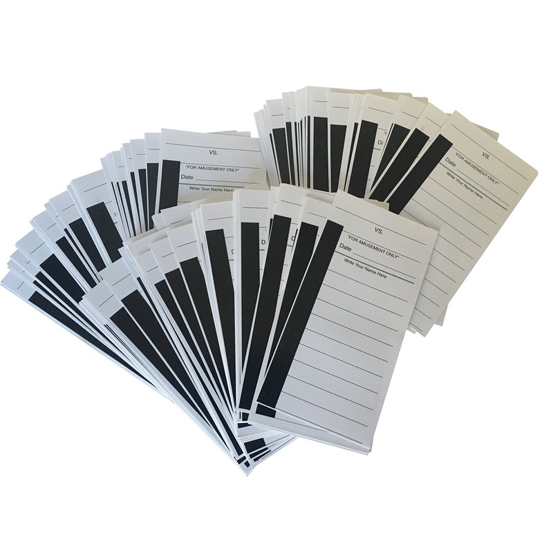 - Heavyweight pull off strip cards to ensure no cheating or peeking prior to start