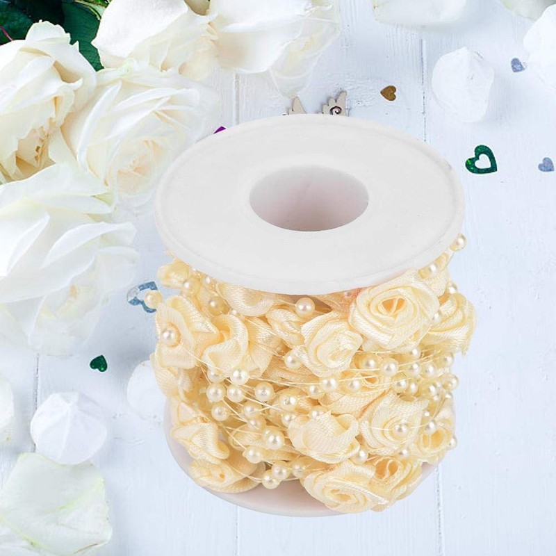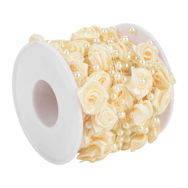 10 m/rollo 3 mm rosa perlas de alambre de perla artificial guirnalda cadena DIY decoración de la boda, con cuentas de cristal de imitación (beige), Materiales Hechos A Mano