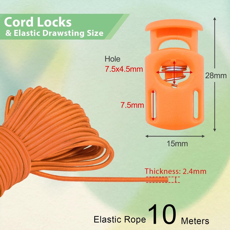 - Included: 10 Meter 3 mm Elastic Cord and 25 pcs Cord Locks