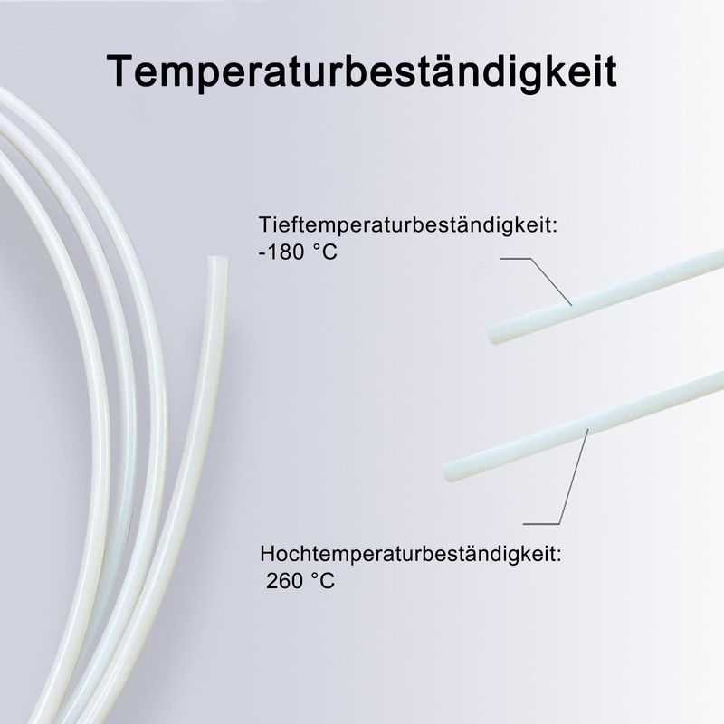 Heat resistance, durability: PTFE hoses can withstand temperatures from -60°-260°, with excellent durability. It ensures consistent performance of a variety of 1.75 mm filaments for long-term use with fewer replacements.