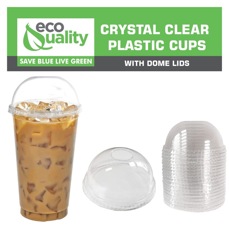 EcoQuality 10oz Clear Disposable PET Cups with Dome Lids