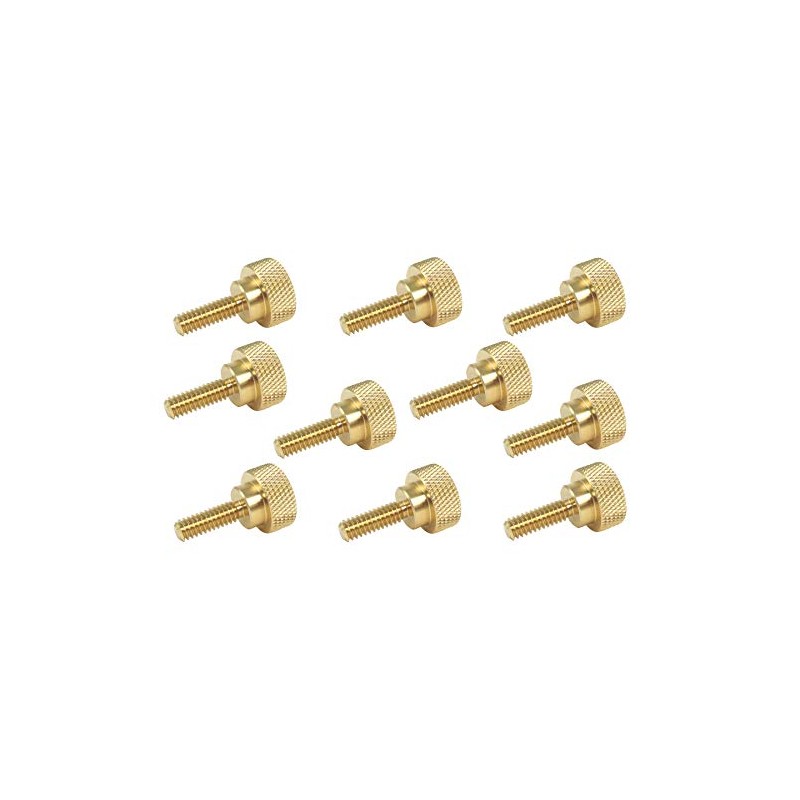 - 10 pack/pieces knurled head solid brass thumb screws with straight shoulders and flat tips