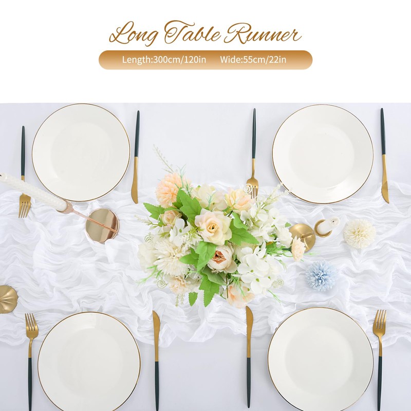 √ White cheese cloth table runner is made of high quality polyester, It is soft while also being romantic, delicate, and flowy. You won’t want to miss out on adding this table runner to your dining space.