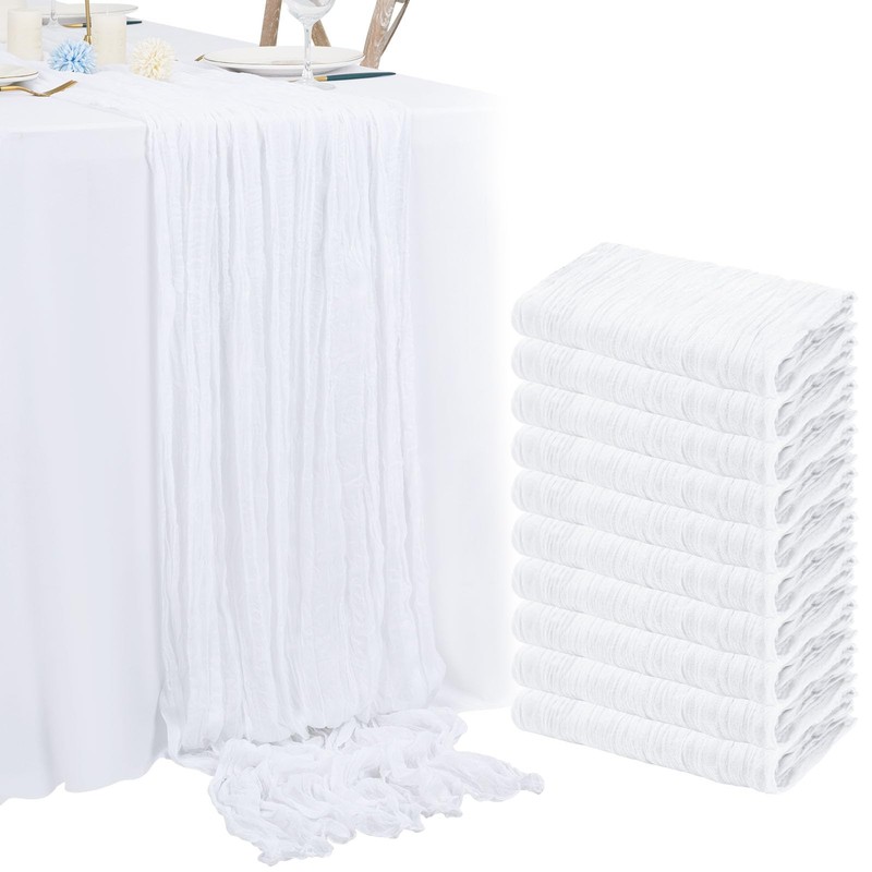 10 Pack 10Ft White Cheesecloth Table Runner Boho Romantic Gauze Table Runner Cheese Cloth Long Table Runner for Wedding Party Bridal Shower Thanksgiving Christmas Decoration