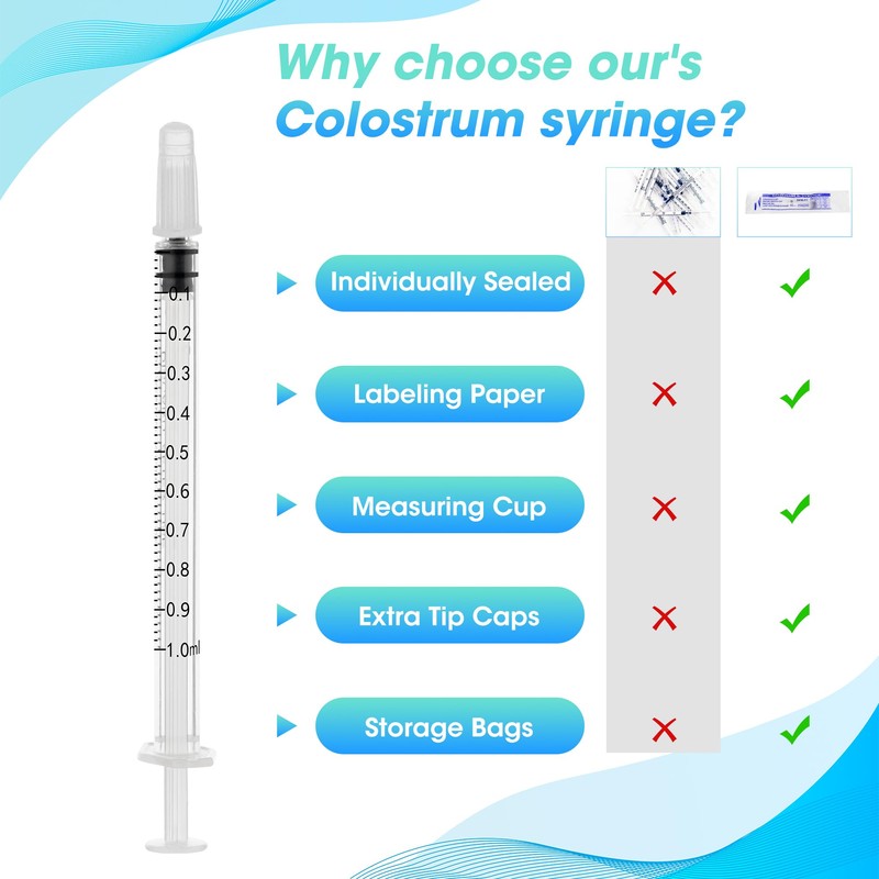 10 Pack 1ml Syringes for Liquid with Cap,Colostrum Syringe Individually Wrapped for Pet Feeding,Oral,Scientific Labs