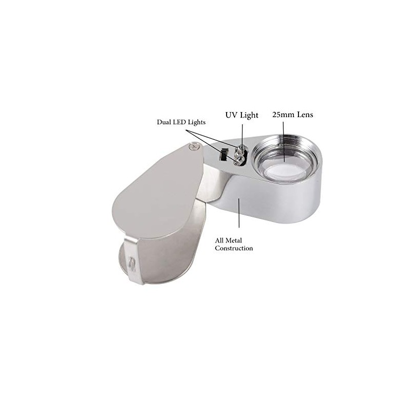 10 Pack 40X Full Metal Illuminated Jewelry Loop Magnifier, XYK Pocket Folding Magnifying Glass Jewelers Eye Loupe with LED(LED Currency Detecting/Jewelry Identifying)
