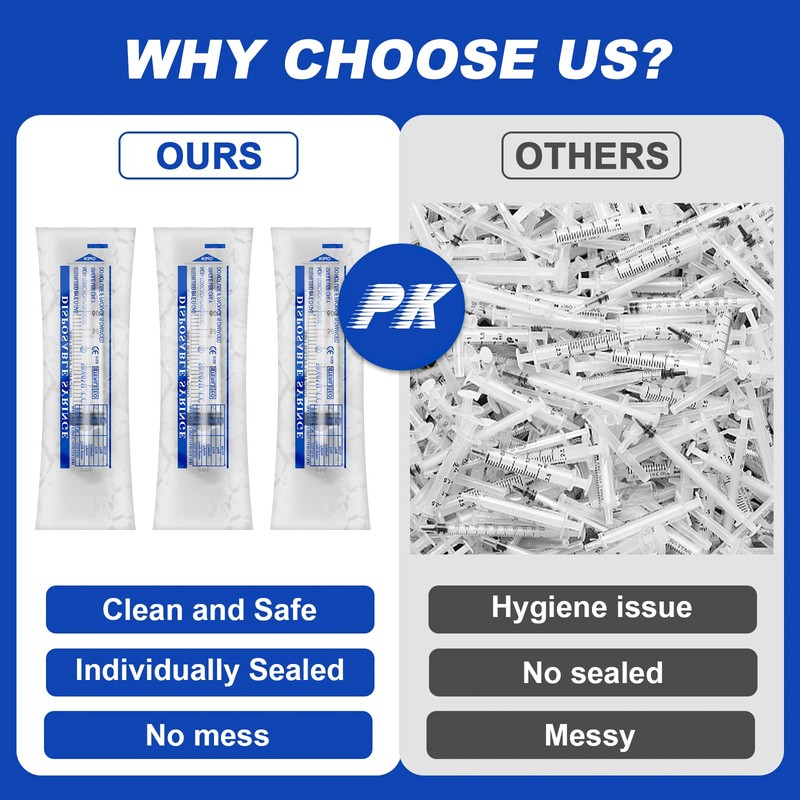 3. Our needless syringes are transparent and clearly printed with a scale that is easy to read, allowing you to measure liquids or gel accurately. Thus, you will not get dose wrong. It’s also helpful to refill, supply or dispense.