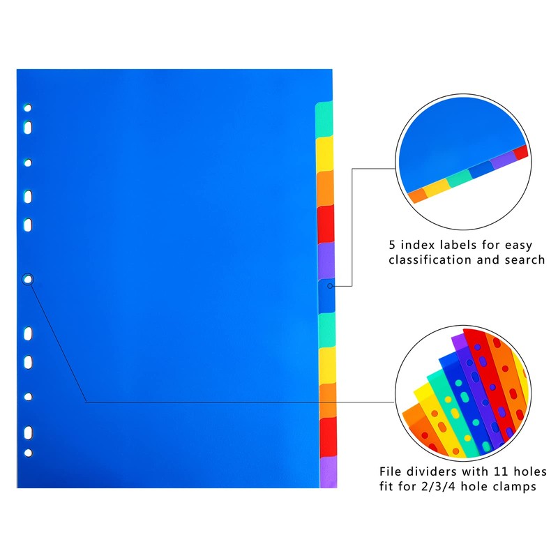 - [High quality]A4 file divider with multi-colour index tabs made of high-quality plastic,waterproof and durable.A4 folder dividers come with writable catalog,you can quickly find the file what you want.
