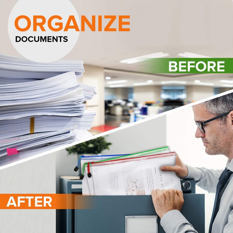 - ☑️ VERSATILE & PRACTICAL - These mesh zipper bags not only help you to stay organized, but they are also a great solution for storage. They are useful in home storage, documents organization, office supplies management & travel organization.