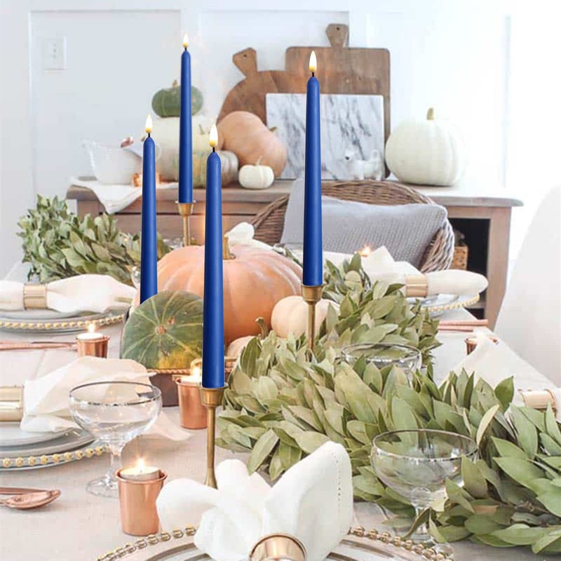• ❤Create a captivating ambiance with this 10 pack of blue wax flameless candles. The elegant taper design and rich color add a touch of sophistication to any candle holder or centerpiece, perfect for weddings and other occasions.