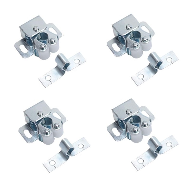 10 Pack Cabinet Door Latch, Cupboard Closet Doors Catch Closer with Screws, Double Roller Latches for Furniture Wardrobe Cupboard Hardware (Silver)