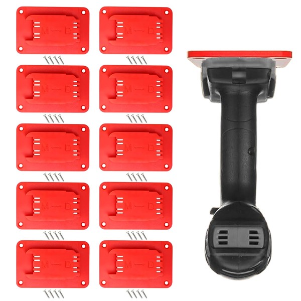 10-Pack Drill Tool Holder Organizer-Compatible with Milwaukee M18 Drills/Drivers, Red Heavy-Duty Hanger Mount for Garage Workshop (RED)