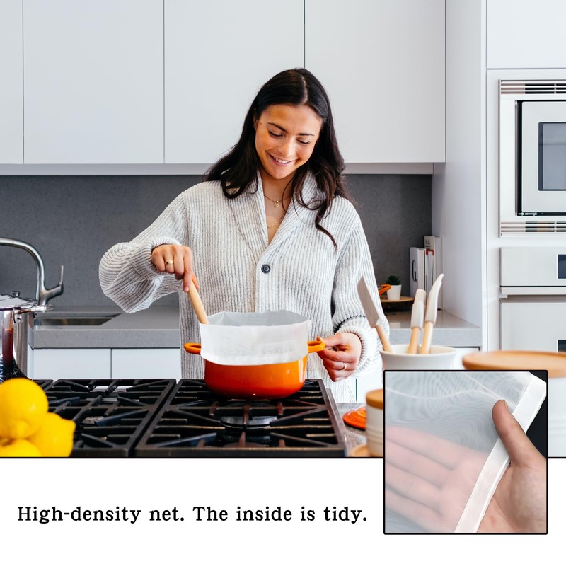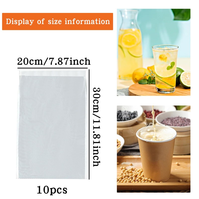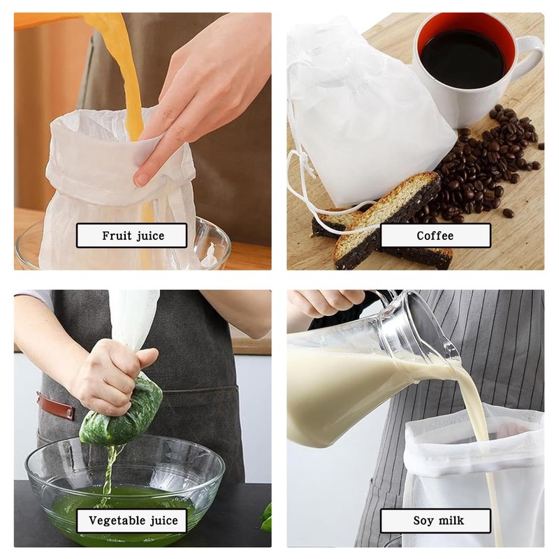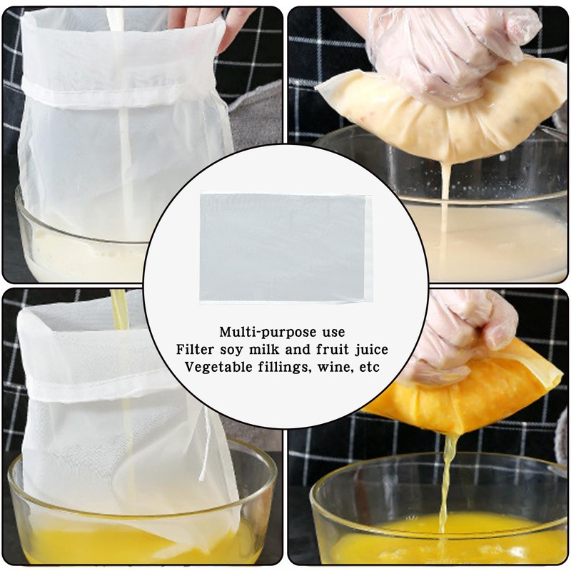10 Pack Food Grade Nylon Straining Cloth with Fine Mesh Strainer, 8"x12" Reusable Strainer Cloths for Cooking Nut Milk Yogurt