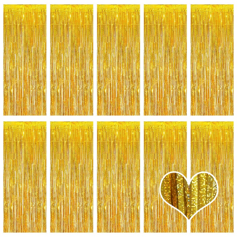 10 Pack Gold Foil Fringe Curtain Backdrop, 3.2ft x 8.2ft Metallic Tinsel Foil Fringe Curtains, Tinsel Backdrop Streamers Foil Curtain for Birthday Party Wedding Christmas Decoration (Sparkle Gold)