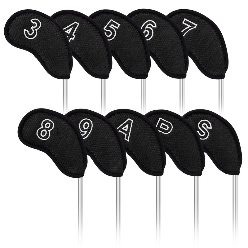 10 Pack Golf Iron Covers Ultra Light Net Headcovers (3-9, P, A, S) Number Embroidered Velcro Closure
