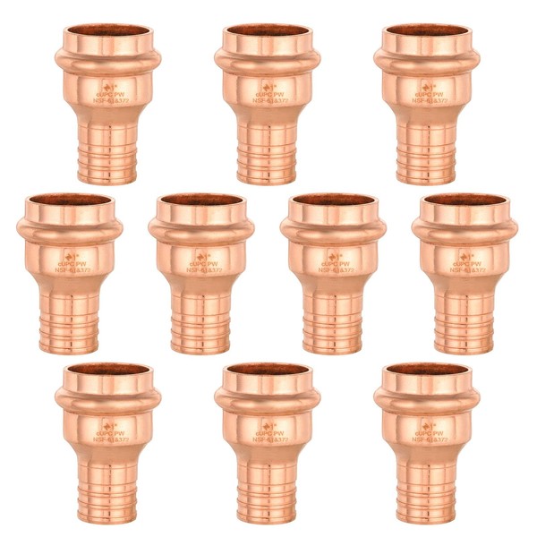 10-Pack GUOFIS Copper Press Fittings, 1 inch Press X 1 inch PEX Crimp Coupling Copper Fittings Adapter for Copper Tube/PEX Pipe Connection with Stop