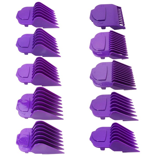 10 Pack Magnetic Clipper Guards Guide Comb Set Replacement Fits for Clippers RCAC, RS-1, US-1, 12470/73010/ 73060/73070 Series, Lengths 1/16" to 1" (Purple) US Stock