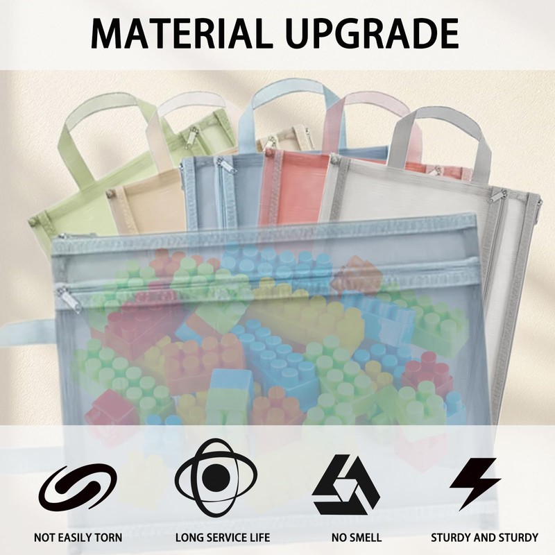 - Toy Storage Bags with Multiple color:You will receive 10 Toy Storage Bags in 5 assorted colors, blue, grey, green, beige, brick red, 2 pcs for each color. The mesh zipper pouch bags with double-layer transparent mesh pockets, one layer can hold instruction books, and the other can store toy pieces,you can freely use toy storage bags of different sizes and colors according to your own needs.