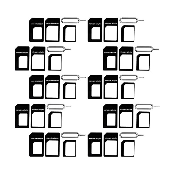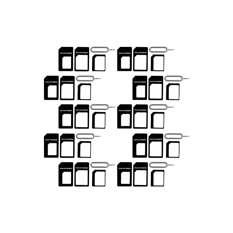- 10 Pack SIM Card Adapter - Each Pack includes 1 Eject Pin for Phone and 3 Adapters - Nano to Micro, Nano to Standard, and Micro to Standard. (Cards are not included.)