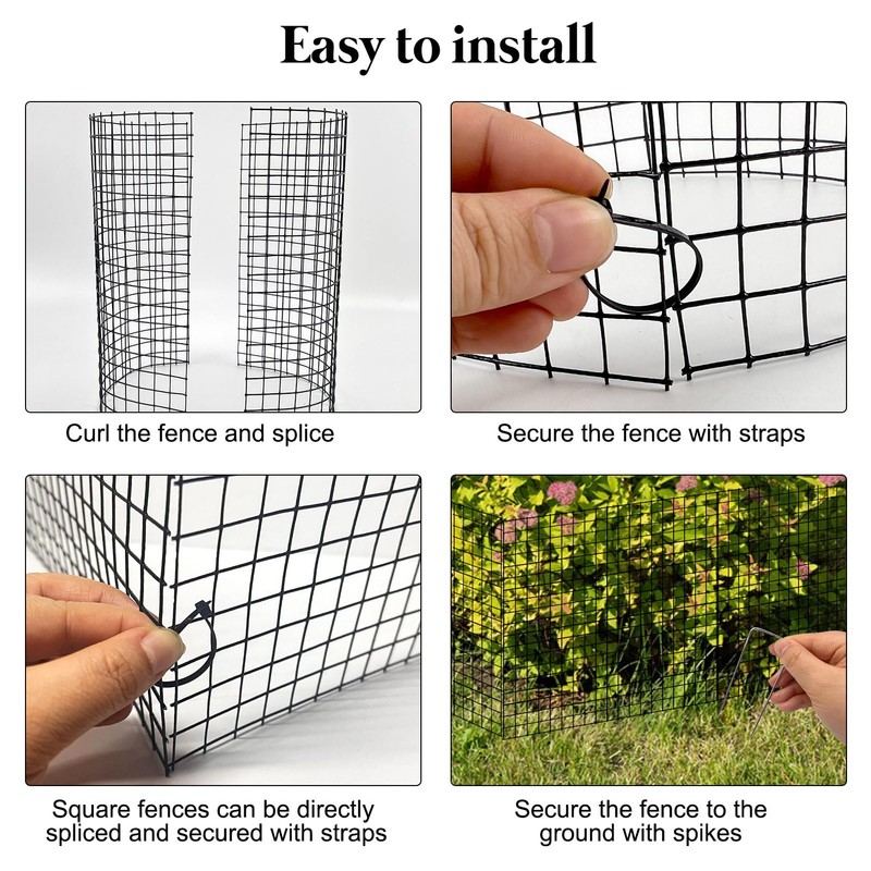 - DIY Plant Cage In Various Shapes: You can assemble 4 mesh into a square assembled plant cage, or assemble a round protection cage, or even more mesh into a larger plant wire cage to protect your plants from harm, use the wire ties included in the package to tie up, circle the plant and then fix it with metal stakes, very simple to install and easy to use.