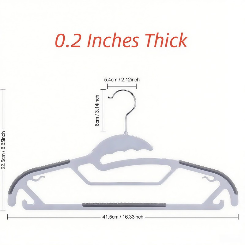 - Non-Slip TPR Grip: Say goodbye to slipping clothes! Our hangers feature non-slip plastic TPR strips that securely hold garments in place. Whether it's silk blouses or lightweight dresses, you can trust these hangers to keep your clothes neatly arranged and off the closet floor