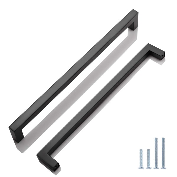 (10 Pack)Probrico Flat Black Cabinet Handles Square Drawer Pulls 10 Inch(256mm) Hole Center Stainless Steel Modern Cabinet Hardware