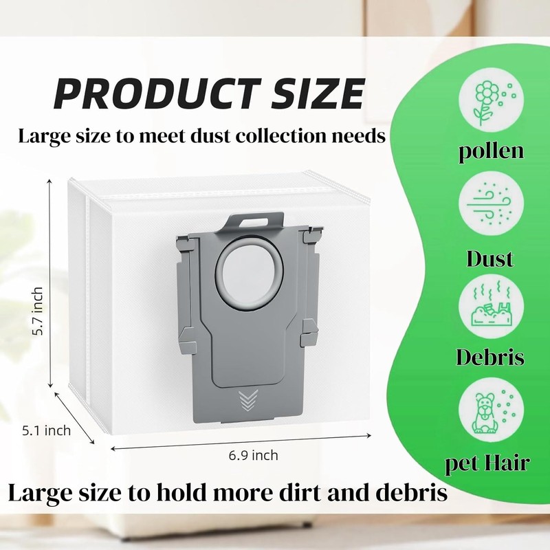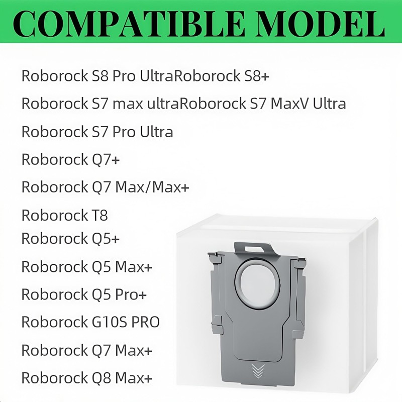 - Package Inlucde: The package contains 10 dust bags for roborock S7 S8 Maxv Utra, meet your long-term robotic vacuum cleaner replacement requirements