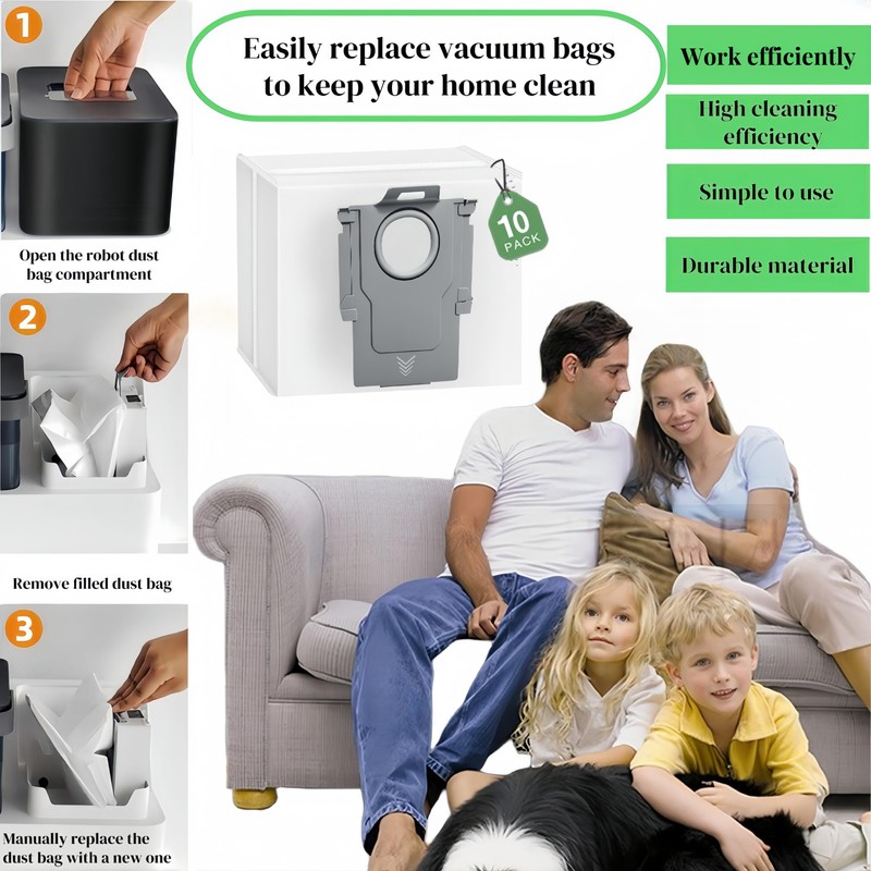 - Easy to use: Easily remove the robot vacuum bag and insert a replacement bag along the holder slot. The push-pull handle design is simple and convenient. It is recommended to replace the bag every 1-2 months to keep your robot vacuum in optimal working condition