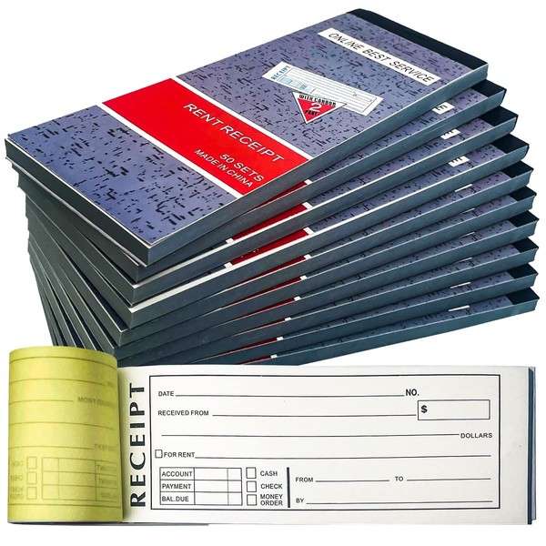 - VALUE PACK: Pack of 10 books. Each book Contains 50 sets per book. Sheet contains areas for recipient, customer information, received from, for rent, dollar amount, balance due, payment method: check, credit, money order.