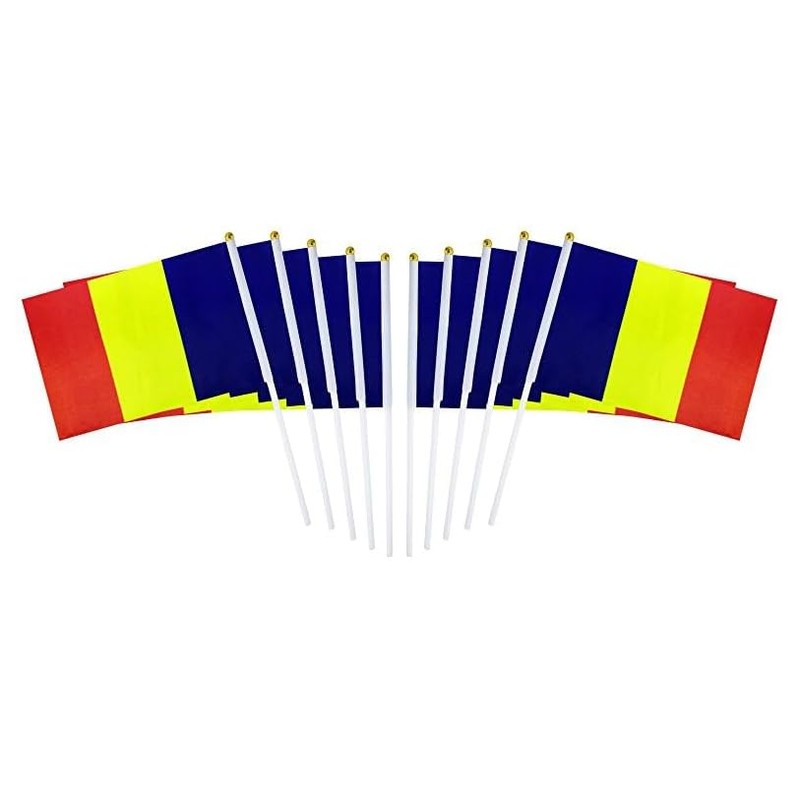 10 Pack Romania Romanian Flags on Stick 5x8 Inch,Patriotic Decorations,Classroom Decor,Small Mini Flags on Sticks,Flag Decorations for Party.