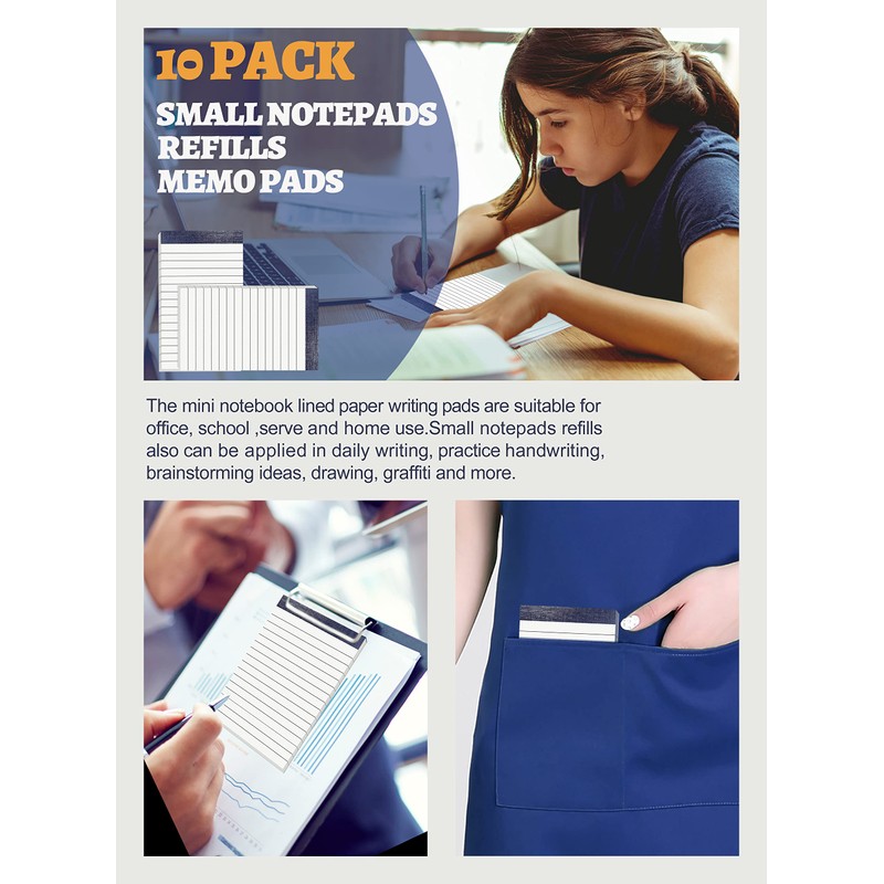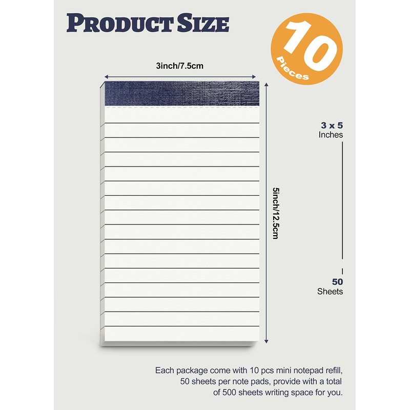 • Valuable Package : Each package come with 10 pcs mini notepad refill, 50 sheets per note pads, provide with a total of 500 sheets writing space for you. These tear off notepad lined 3x5 sufficient quantity can meet your daily usage and replacement, without worrying about running out of paper. The small lined pads lined are easy to carry and can be used anytime, anywhere. Recorded, no more things will be forgotten.