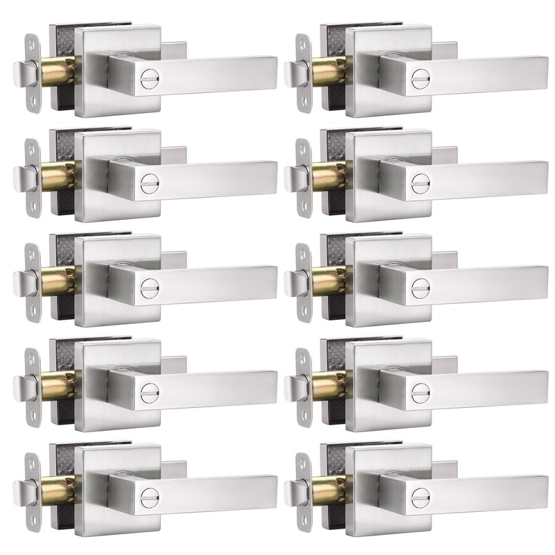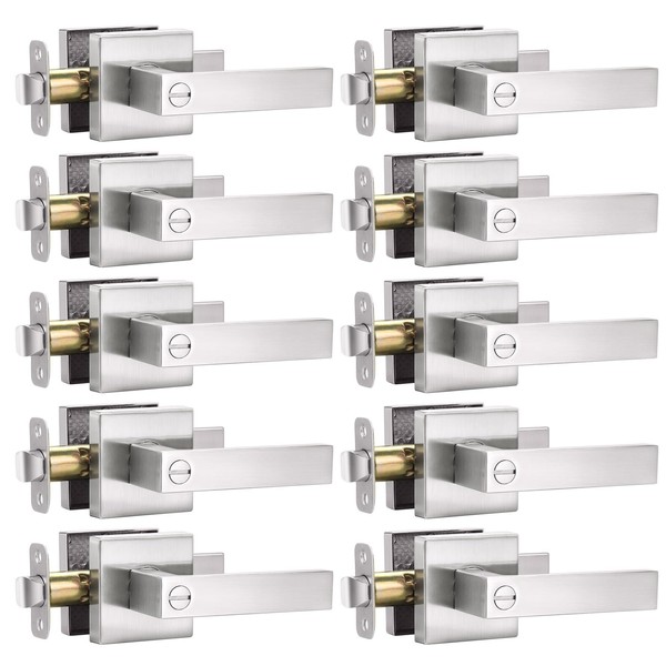 10 Pack Square Door Lever Privacy Door Lock Handleset, Keyless Lockset Door Knobs Interior Door Knobs Storage Room Bathroom Set Reversible Keyless Flat Levers in Satin Nickel