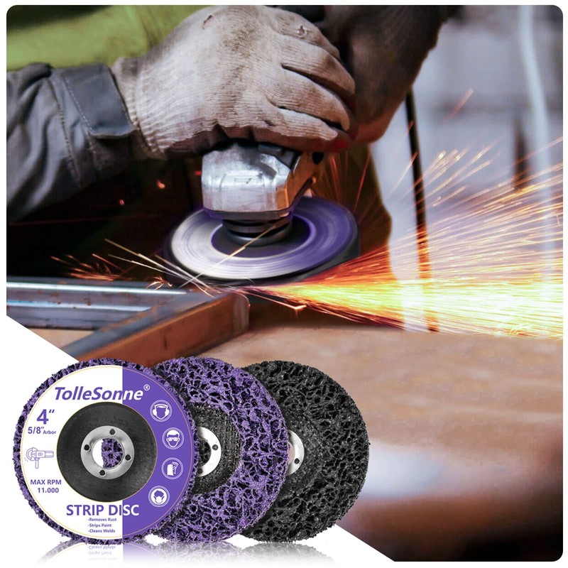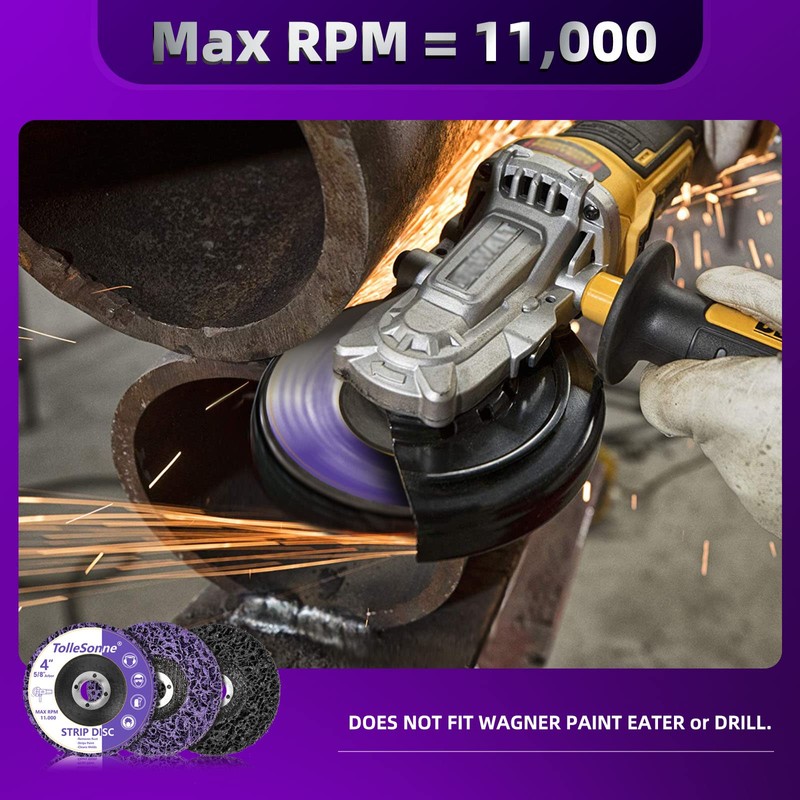 - 【Fit for Your Tools】-This 4-1/2" x 5/8" stripping disc set is designed to fit most standard angle grinders and polishing machines for easy application and use. Please note that this product DOES NOT FIT WAGNER PAINT EATER or DRILL, so please make sure the arbor size with your grinder machine is compatible before purchasing.