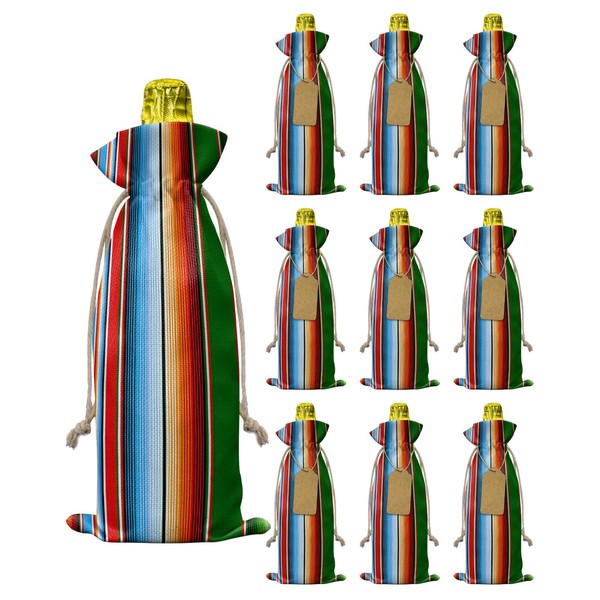 10 Pack Wine Bottle Bags, Mexican Serape Colorful Stripes Wine Bottle Cover with Drawstring, Rainbow Parallel Lines Gift Bag for Champagne, Wedding, Birthday, Party