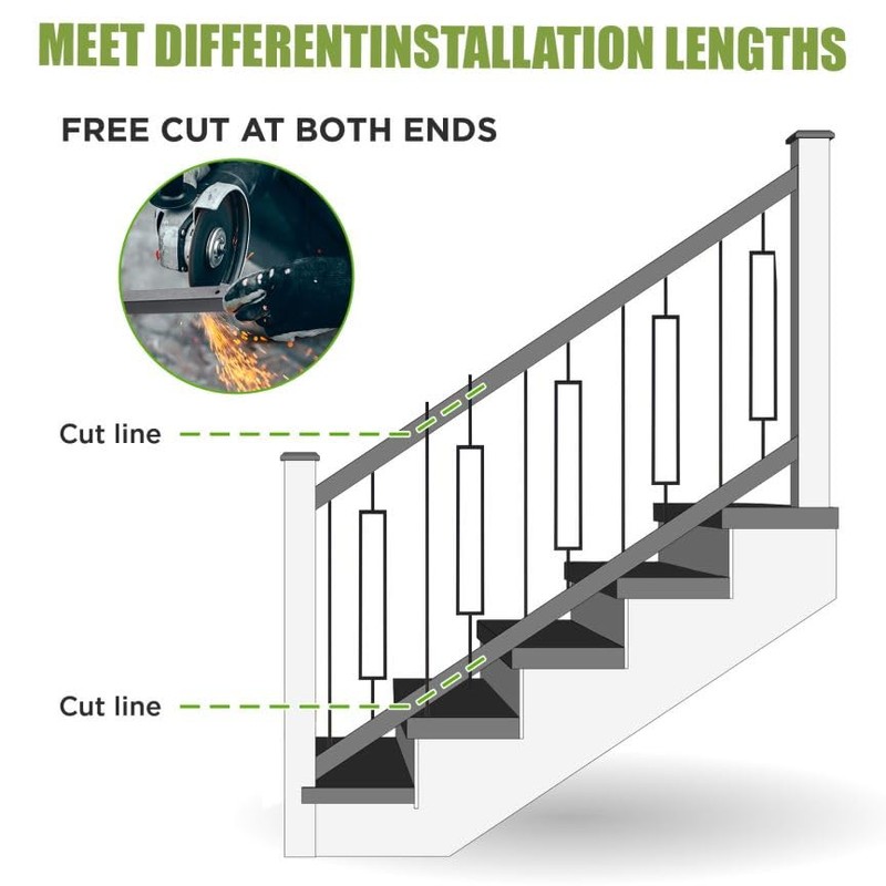 - Exact Match: Our wrought iron balusters for stairs measure 44 x 0.47-inch with a squarel. The indoor balusters can be used with a wide range of designs for you to choose from. It can be installed on wood, composite, or aluminum railing. This makes stair remodeling convenient and efficient