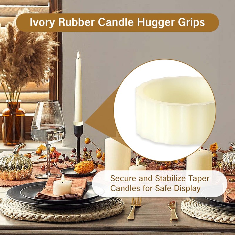 - Great Fit for Standard Candles: With precise dimensions (7/8" outer diameter, 3/4" inner diameter, and 3/8" height), these rubber candle huggers fit snugly on most taper candles and candle holders