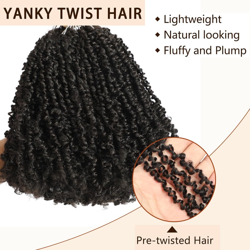 - Advantages: FALEMEI Yanky Twist Crochet Hair, Boho Spring Mini Twist Crochet Hair. Hand-Made to achieve unique and natural yanky twist hairstyle. Different colors available, versatile style, suitable for various occasions.