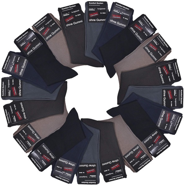 Pack of 10 women's and men's socks without rubber, 100% cotton, business socks hand-linked without seam, also suitable for diabetics, branded product size 35 to 50 available