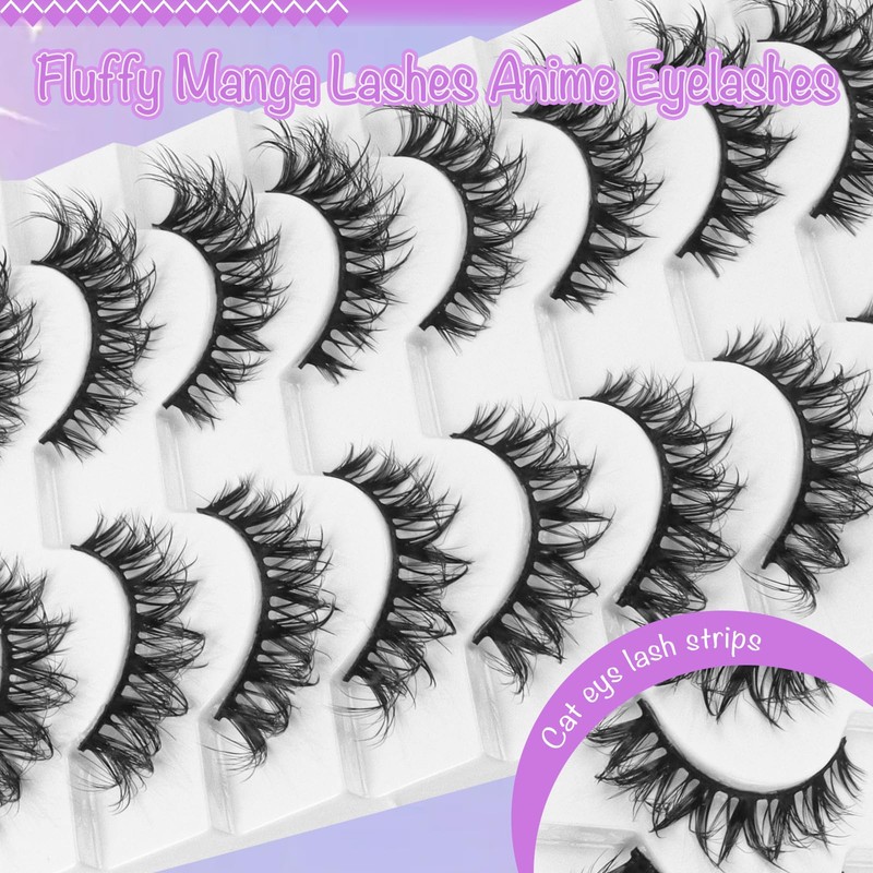 - DIY Lash Look: You can bring the beauty salon home DIY to Cat eye, Round eye, Manga Lashes or use it with strip lashes, whatever you want. Wispy fake eyelashes meets variety for an ever-changing, perfect for daily/cosplay/photoshoots.