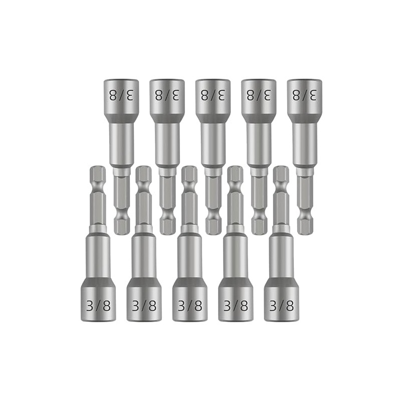 - ✔️ 【Package Includes】 10-Piece 3/8" Magnetic Nut Driver bits, each measuring 65mm (2.5") in length. Perfect for use with any impact drill or power tool, this heavy-duty nut driver set is designed for fasteners, sockets, and DIY projects.