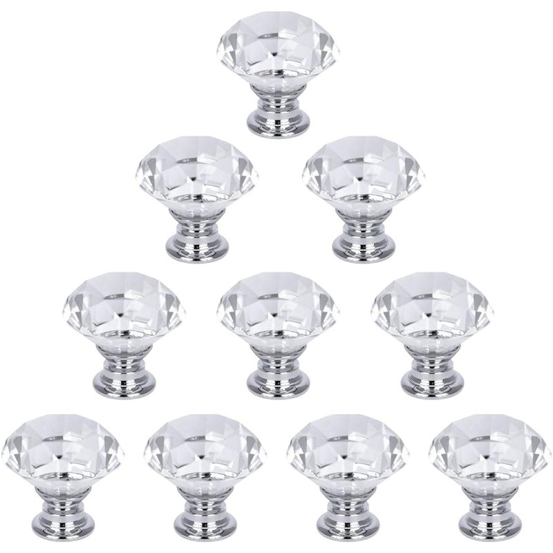 10 Pcs 30mm Diamond Shape Crystal Glass Cabinet Knob