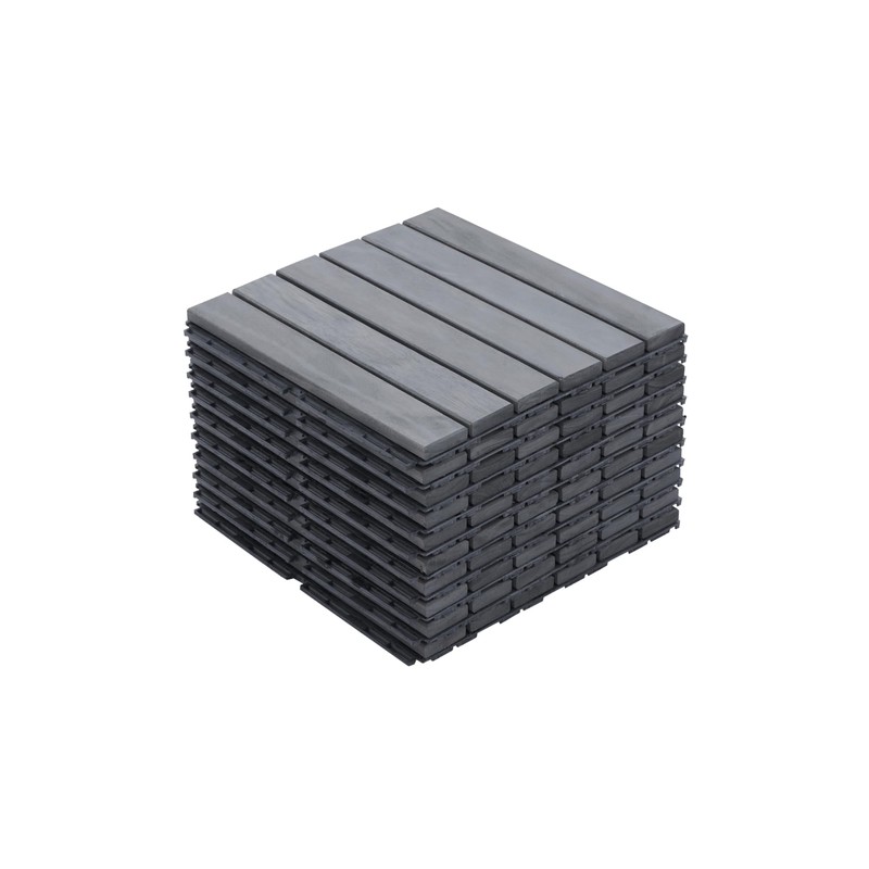 10 PCS Acacia Wood Interlocking Deck Tiles-12 X12 Waterproof Outdoor Floor All Weather Use, Patio Floor Decking Tiles for Porch Poolside Balcony Backyard, All-Weather Use, Stripe Pattern, Gray